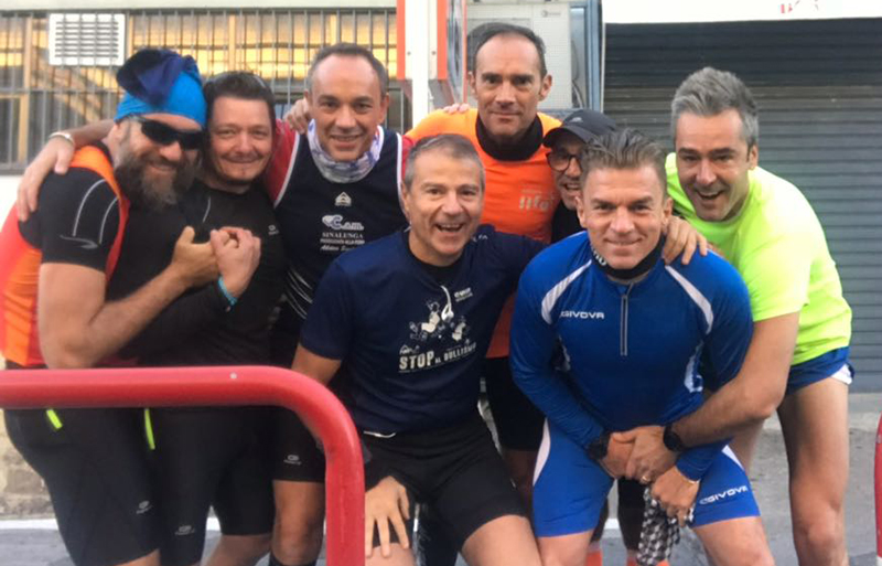 Al solito, vedendo i suoi discepoli, lanciava qualche consiglio a caso e prometteva che, terminati i suoi 21 km (36 li aveva già fatti la settimana scorsa) ci avrebbe raggiunto lungo il percorso in moto per vedere se avesse dovuto chiamare il 118.