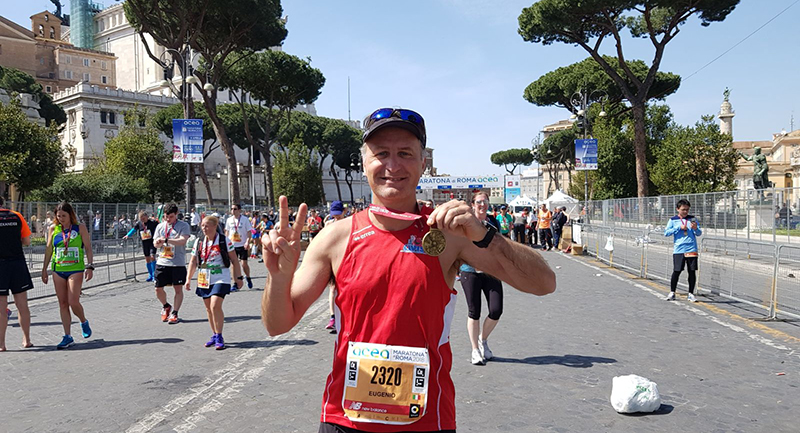 Ritroviamo quindi un altro Eugenio che negli ultimi due anni ha già inanellato varie gare, fra cui alcuni trail molto impegnativi, e nella primavera del 2018 anche la MARATONA DI ROMA dove si è distinto non tanto sul percorso di gara, quanto ai ristori.