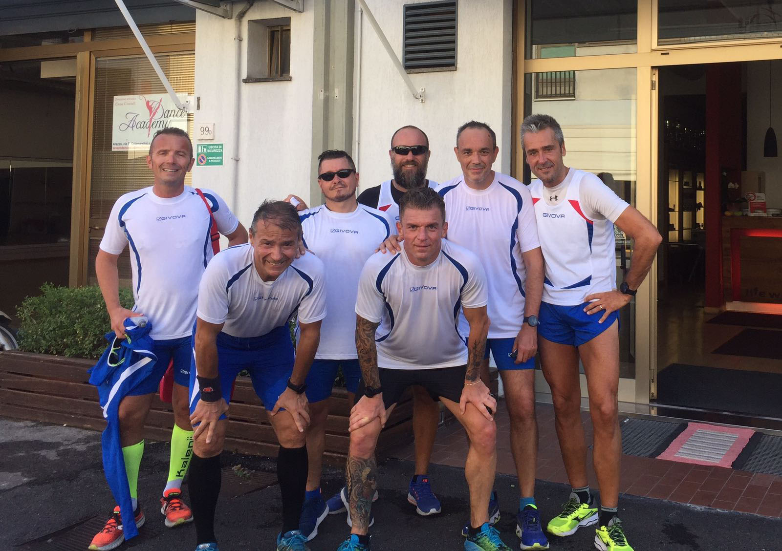 Un gruppo di 7 corridori in maglia bianca e pantaloncini blu che alcuni guardano con ammirazione nel loro incedere elegante e felpato, ma che alla maggior parte degli altri sembra solo un gruppo di “giovani vecchi” che devono decidere fra questa attività o l’andare a vedere a che punto sono i lavori nei vari cantieri cittadini.